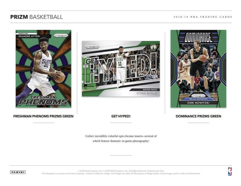 FRESHMAN PHENOMS PRIZMS GREEN/GET HYPED!/DOMINANCE PRIZMS GREEN:Â Collect incredibly colorful opti-chrome inserts--several of which feature dramatic in-game photography!