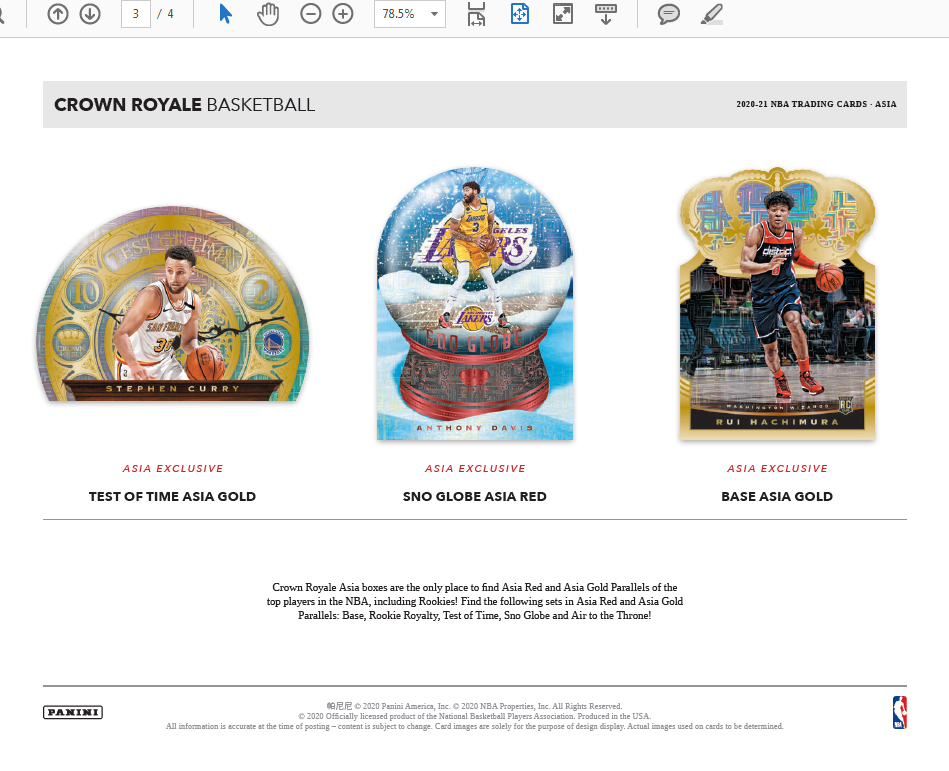 • Look for the following inserts in exclusive Red and Gold Asia Parallels: