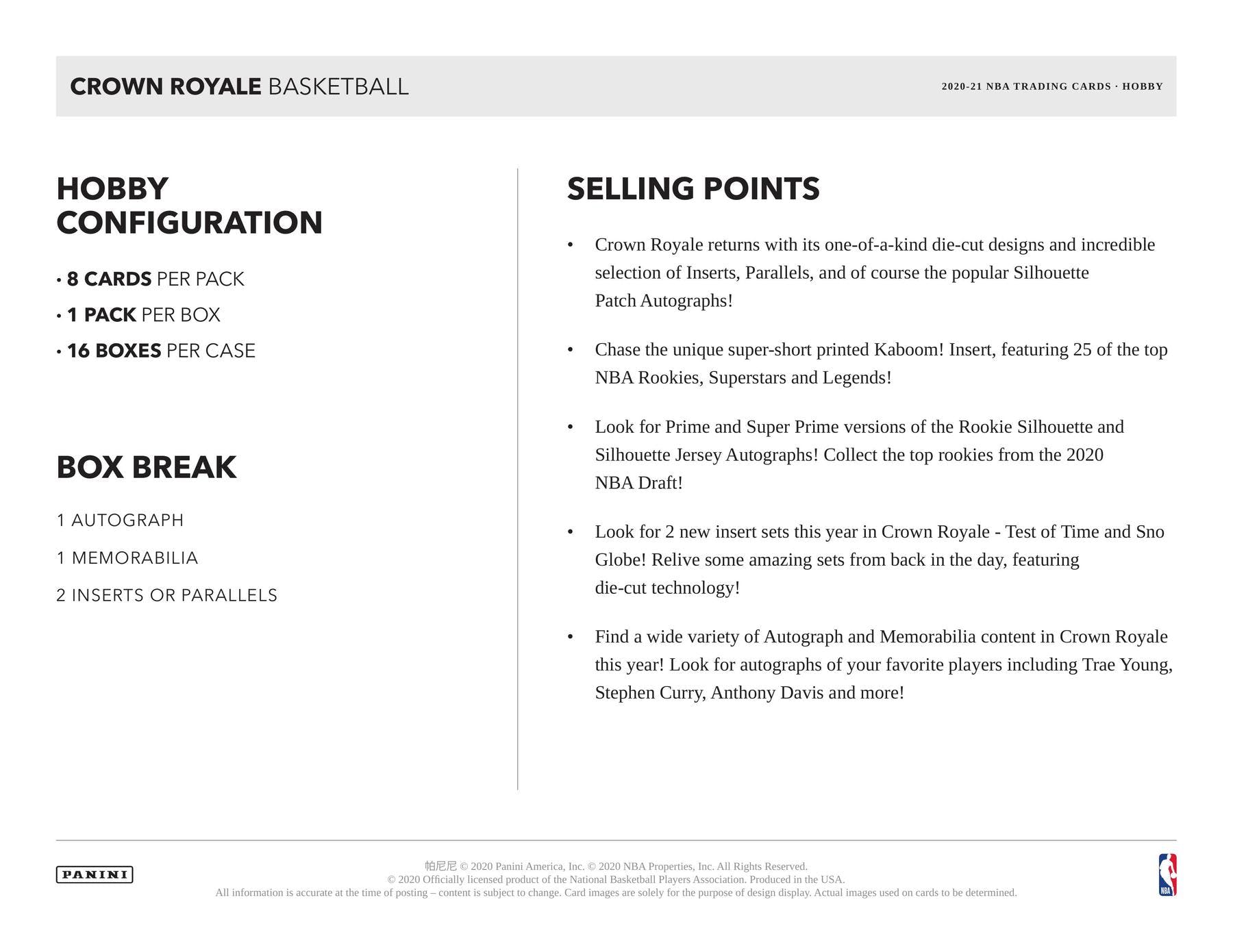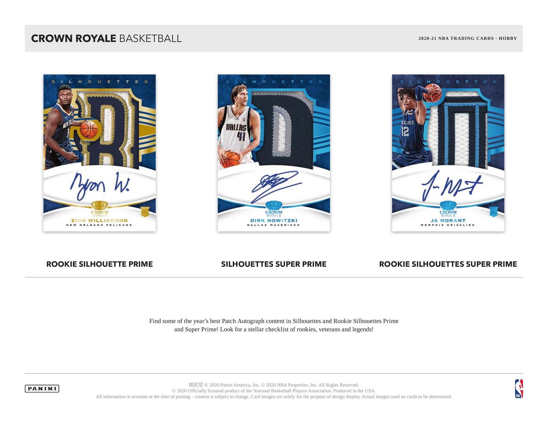 - Crown Royale returns with its one-of-a-kind die-cut designs and incredible selection of Inserts, Parallels, and of course the popular Silhouette Patch Autographs!
