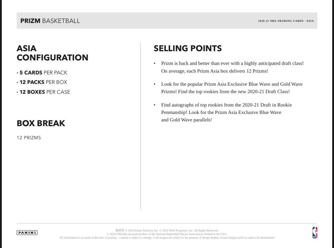 - Look for the popular Prizm Asia Exclusive Blue Wave and Gold Wave Prizms! Find the top rookies from the new 2020-21 Draft Class!