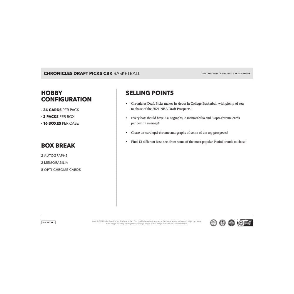 2021-22 Panini Chronicles Draft Picks Collegiate Basketball Hobby Case