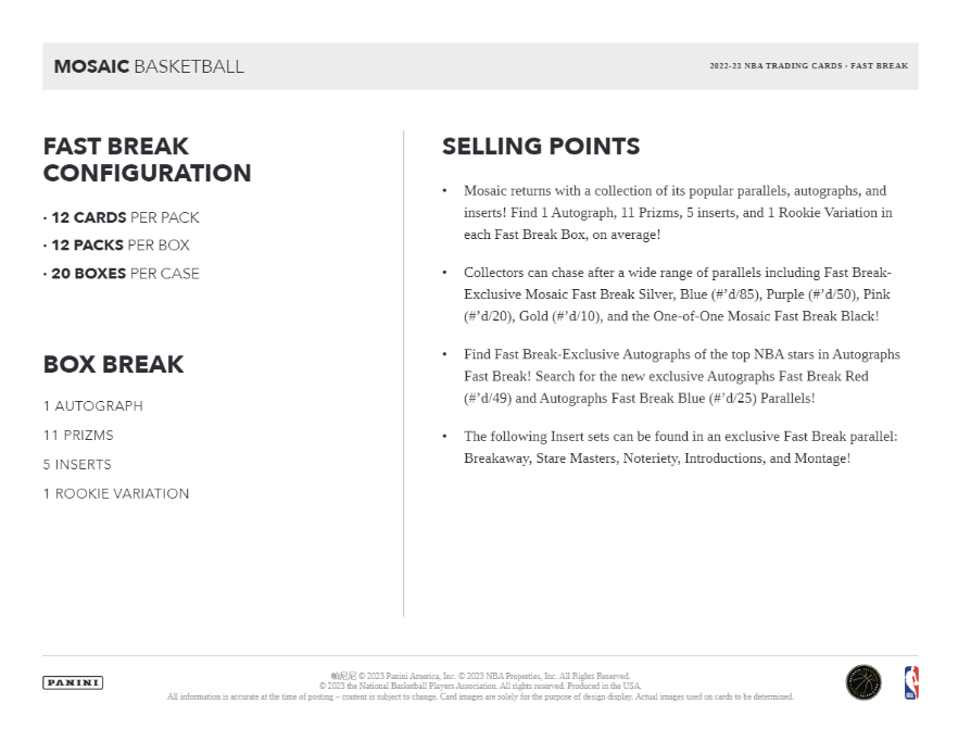2022-23 Panini Mosaic Basketball Fast Break Box
