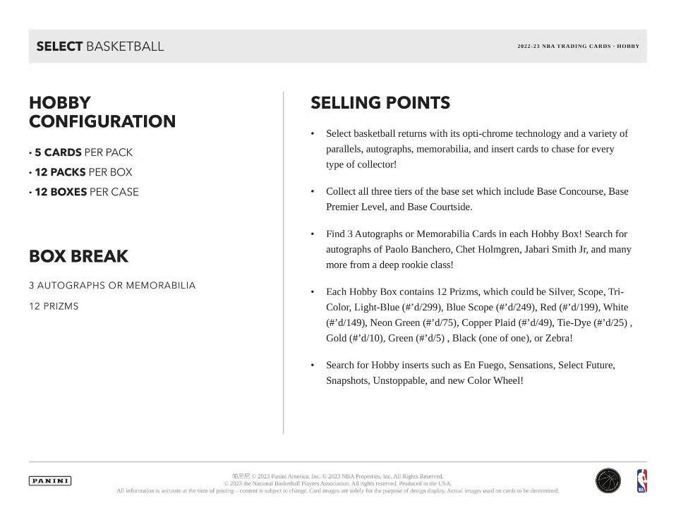 Select basketball returns with its opti-chrome technology and a variety of parallels, autographs, memorabilia and insert cards to chase for every type of collector!