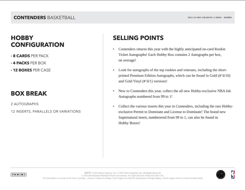Contenders returns this year with the highly anticipated on-card Rookie Ticket Autographs! Each Hobby Box contains 2 Autographs per box, on average!