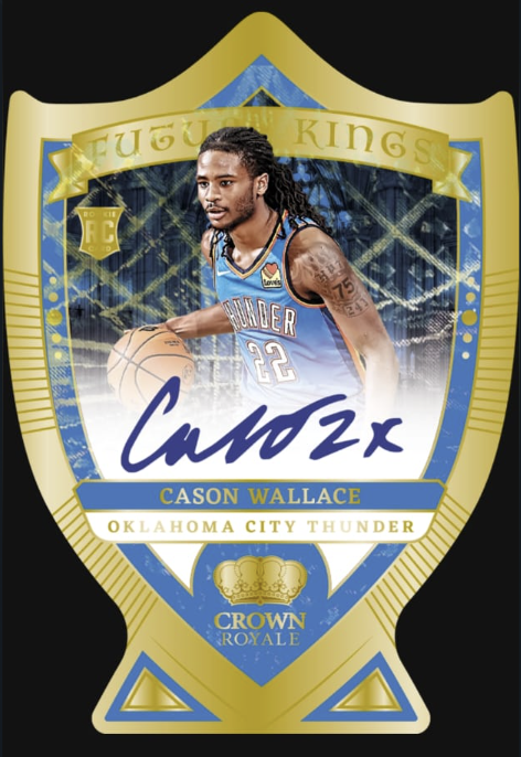 Crown Royale returns with its one-of-a-kind die-cut designs and an incredible selection of Inserts, Parallels, and Autographs! Look for autographs from legends of the game from the past and present such as Tim Duncan, James Harden, Dirk Nowitzki, Brandon Roy, Trae Young, Chet Holmgren, Steve Nash, Ja Morant, Stephen Curry, Tracy McGrady, Allen Iverson, Kevin Garnett, Dwyane Wade, and Jalen Williams among others!