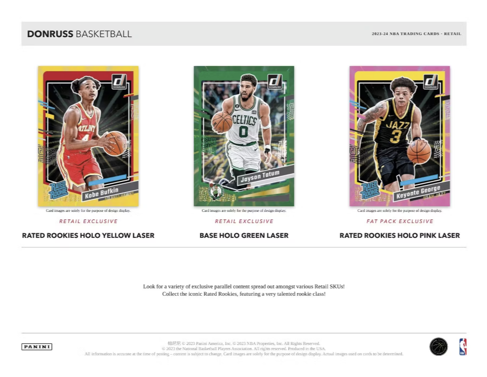 RATED ROOKIES SIGNATURES:Â There is no shortfall of exclusive autograph content across Retail SKUs for 2023-24 Donruss! Look for autographs in Rated Rookies Signatures and Signature Series!
