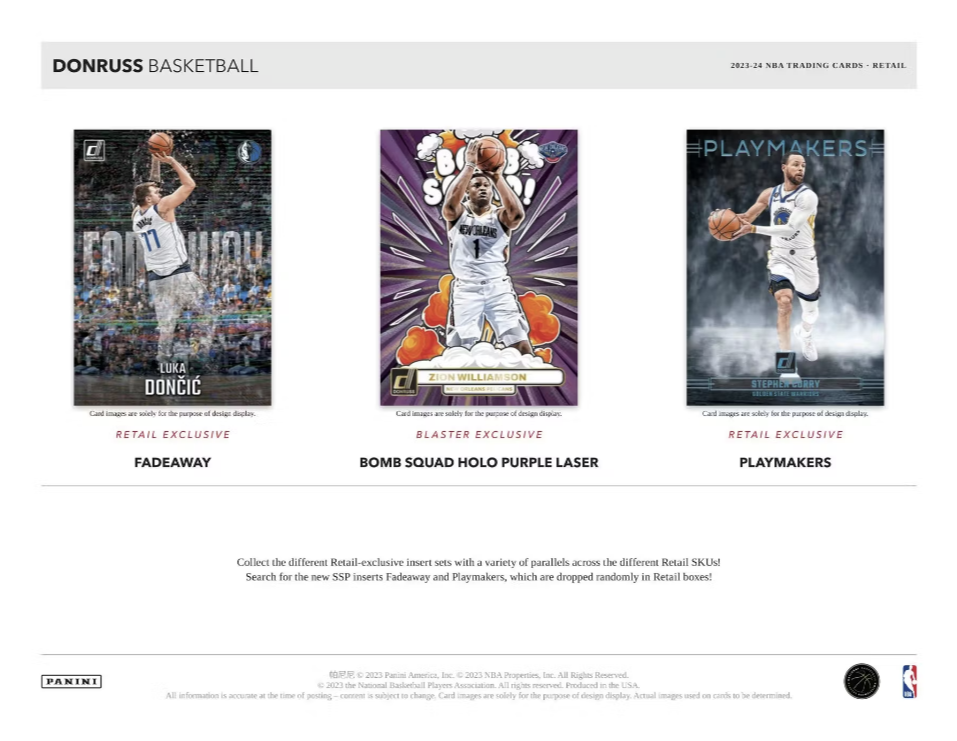 INSERTS:Â Collect the different Retail-exclusive insert sets with a variety of parallels across the different Retail SKUs! Search for the new SSP inserts Fadeaway and Playmakers, which are dropped randomly in Retail boxes!