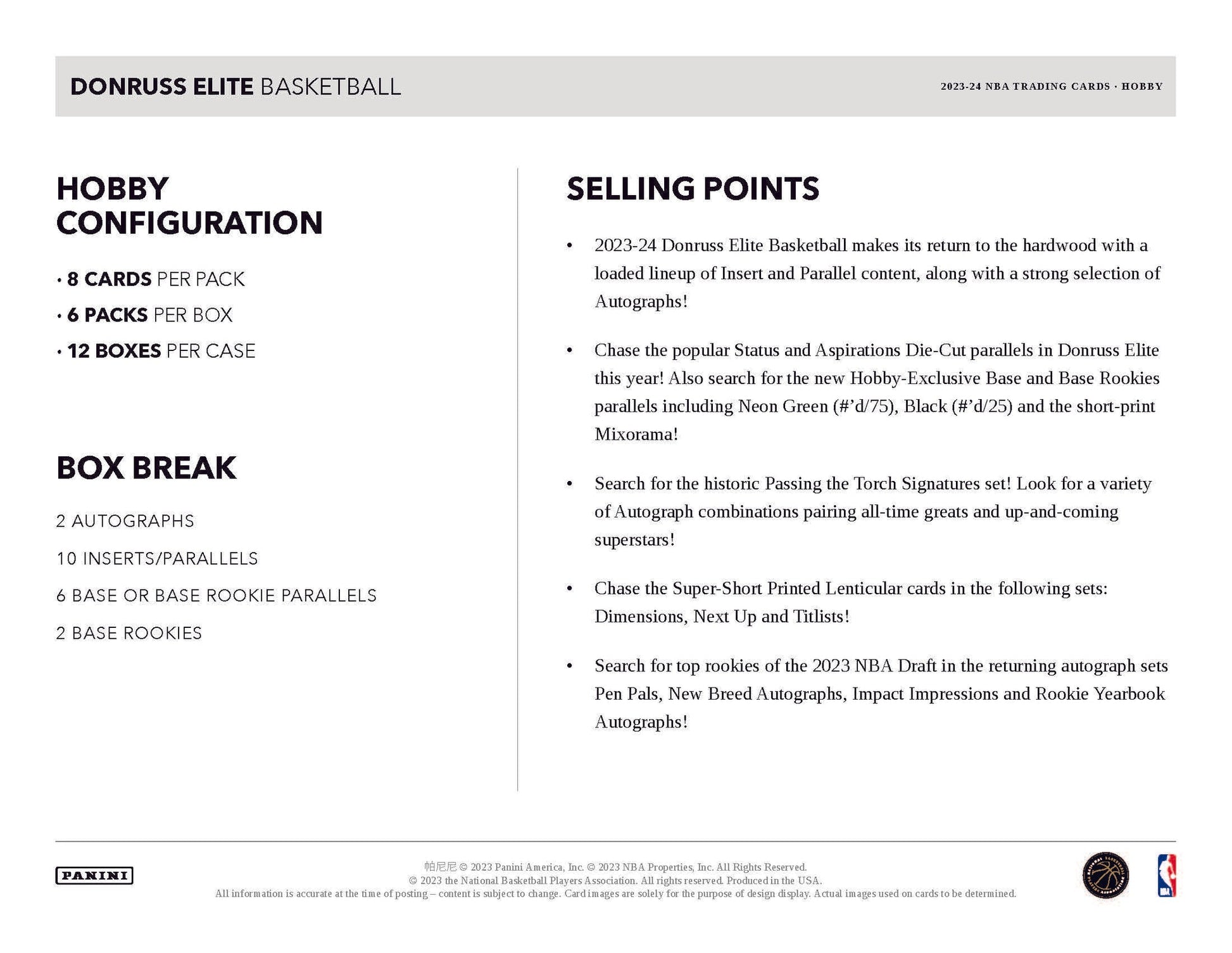 2023-24 Donruss Elite Basketball makes its return to the hardwood with a loaded lineup of Insert and Parallel content, along with a strong selection of Autographs!