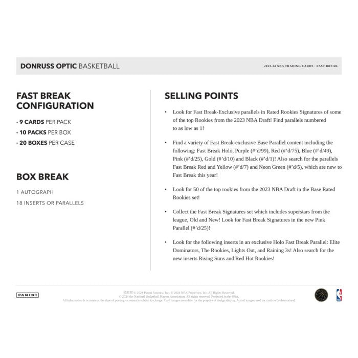 2023-24 Panini Donruss Optic Basketball Fastbreak