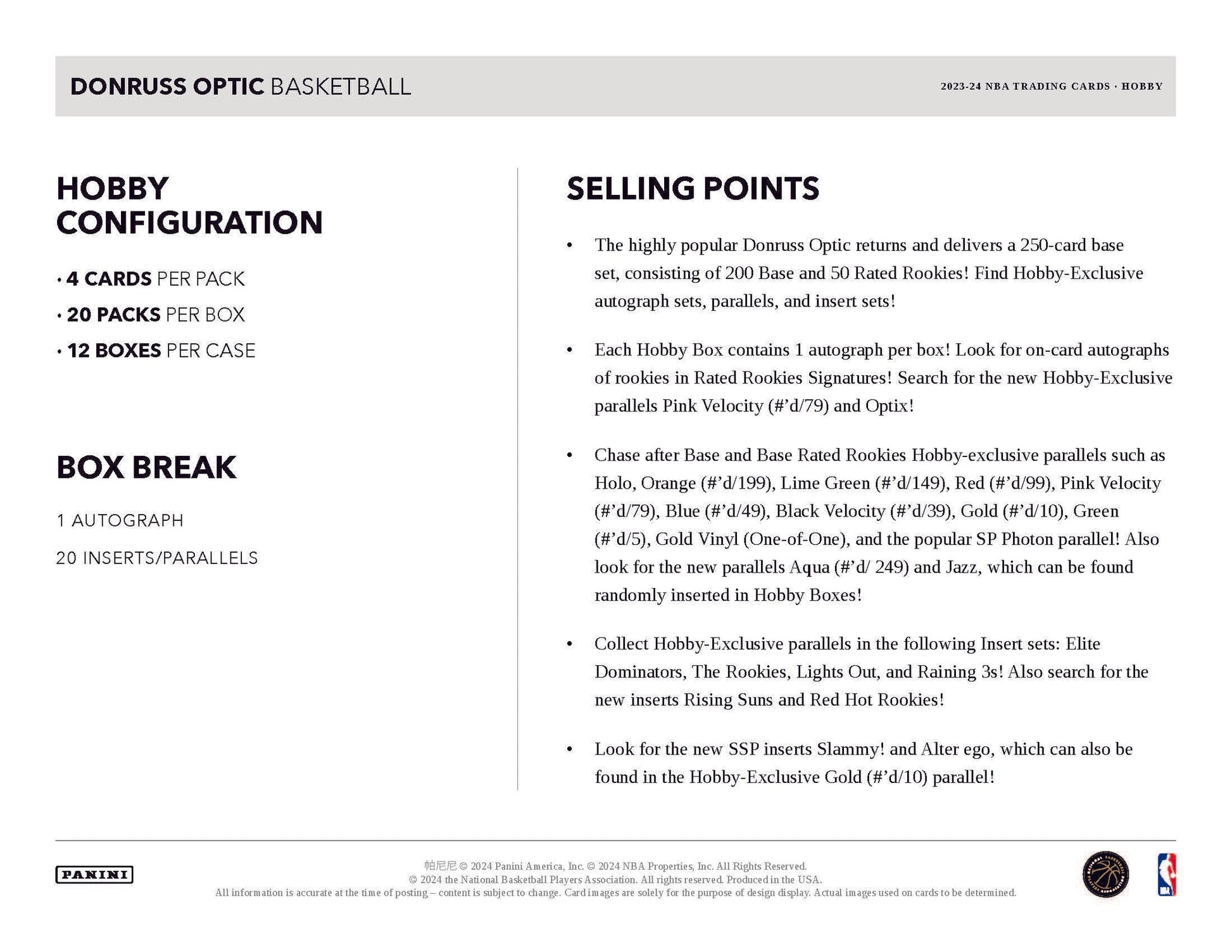 The highly popular Donruss Optic returns and delivers a 250-card base set, consisting of 200 Base and 50 Rated Rookies! Find Hobby-Exclusive autograph sets, parallels, and insert sets!
