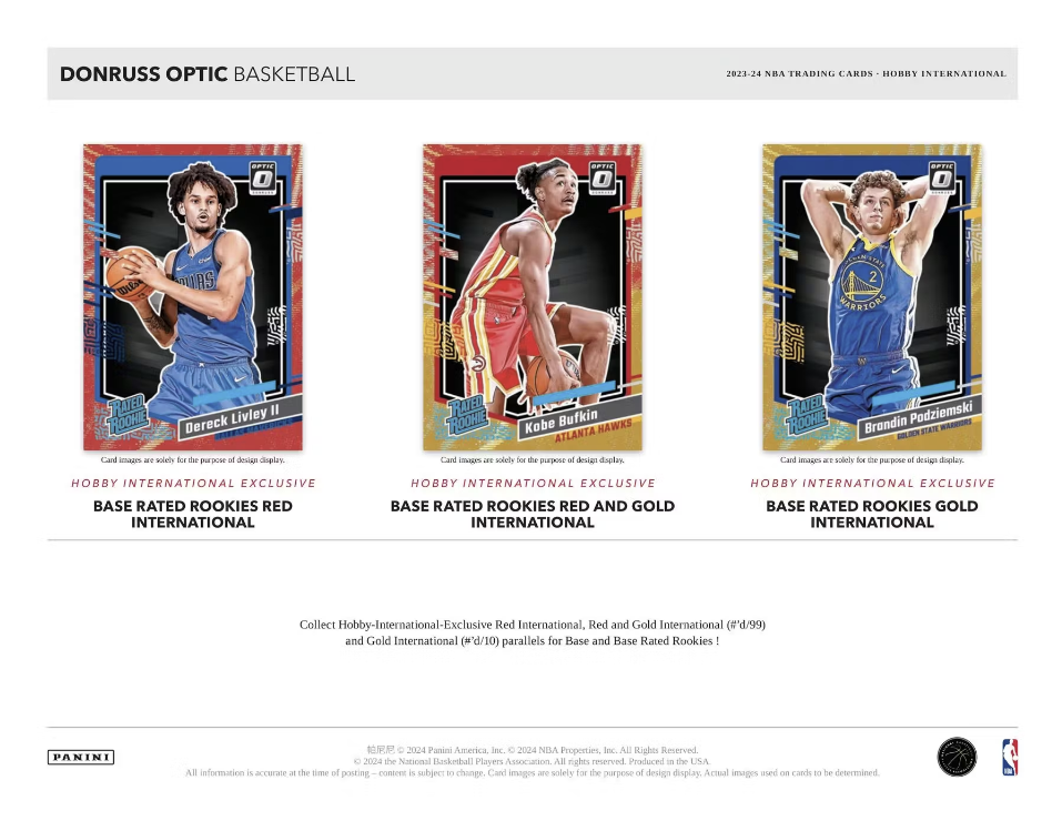 BASE RATED ROOKIES:Â Collect Hobby-International-Exclusive Red International, Red and Gold International (#'d/99) and Gold International (#'d/10) parallels for Base and Base Rated Rookies!