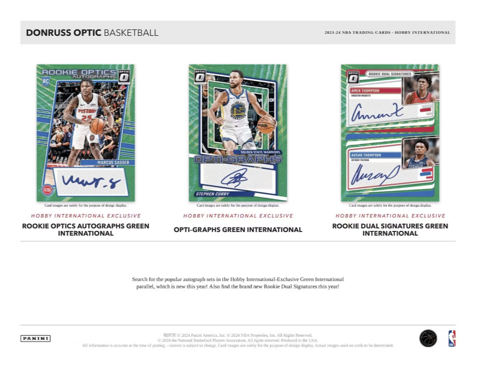 ROOKIES OPTICS AUTOGRAPHS / OPTI-GRAPHS / ROOKIE DUAL SIGNATURES:Â Search for the popular autograph sets in the Hobby International-Exclusive Green International parallel, which is new this year! Also find the brand new Rookie Dual Signatures this year!