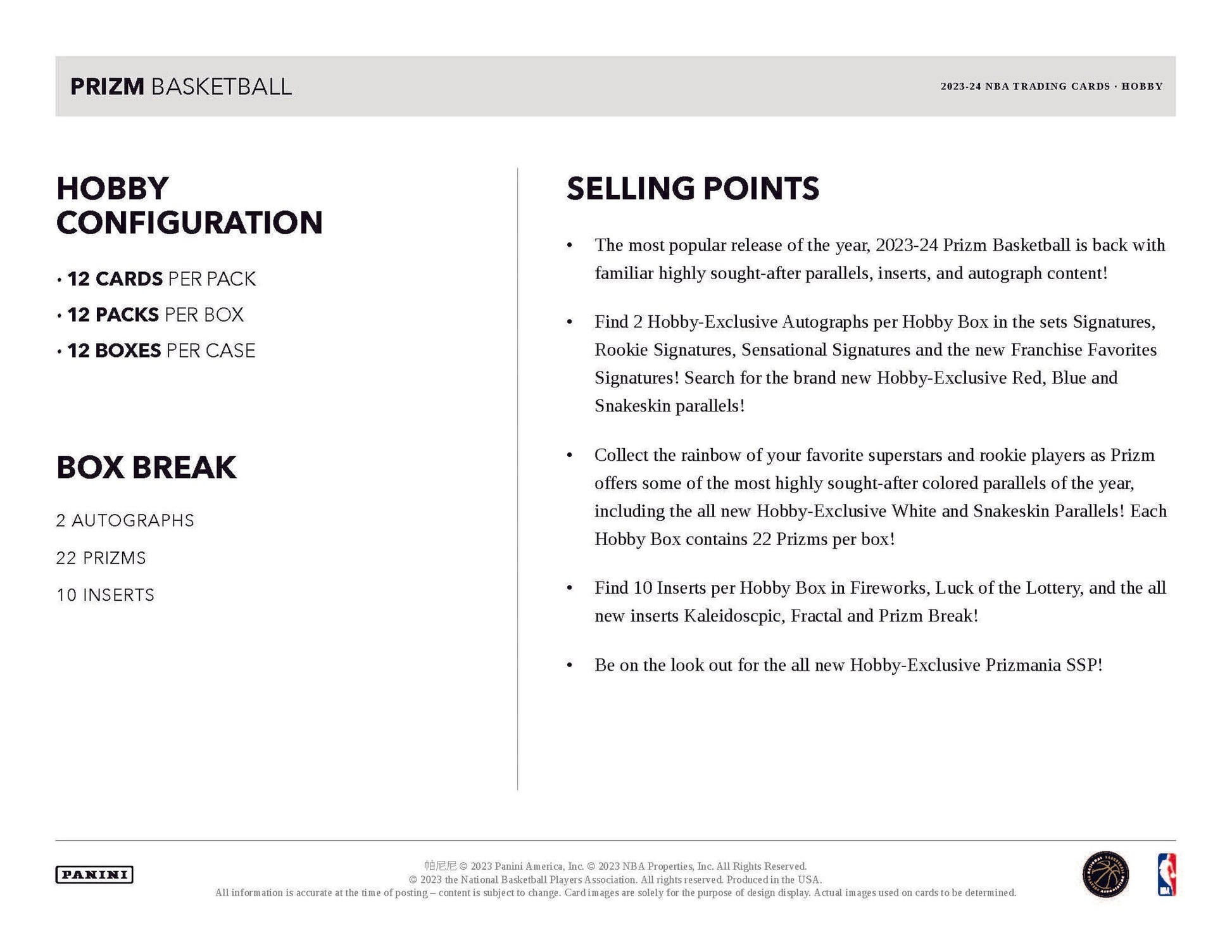 BASE PRIZMS BLACK GOLD / BASE PRIZM WHITE / BASE PRIZM SNAKESKIN:Â Search for the all new Hobby-Exclusive White and Snakeskin Parallels of the top players from around the league and the new 2023 NBA Draft Class!