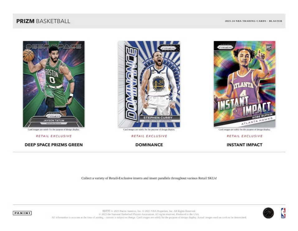 Find Retail-Exclusive inserts such as Instant Impact, Emergent, Dominance, Global Reach, and the new Deep Space insert! Search for these inserts in Prizms Silver and Prizms Green parallels, which can be found across all Retail SKUs!