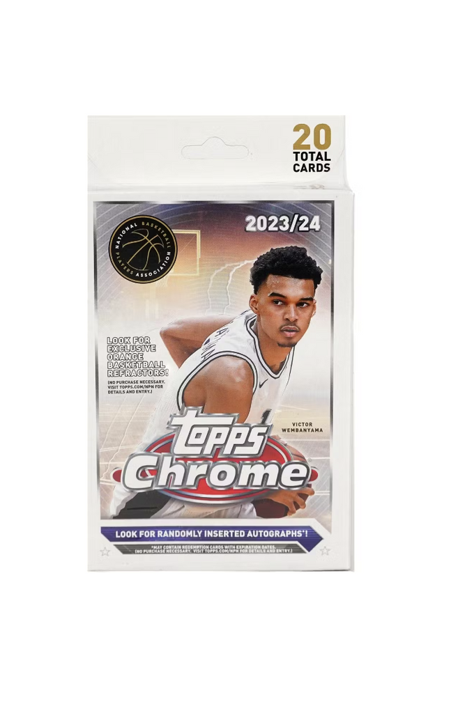 Returning to the Hobby in 2024, Topps Chrome Basketball is back! Find and collect the 200 card Base set featuring some of the top Rookies, Vets and Retired players in Basketball!
