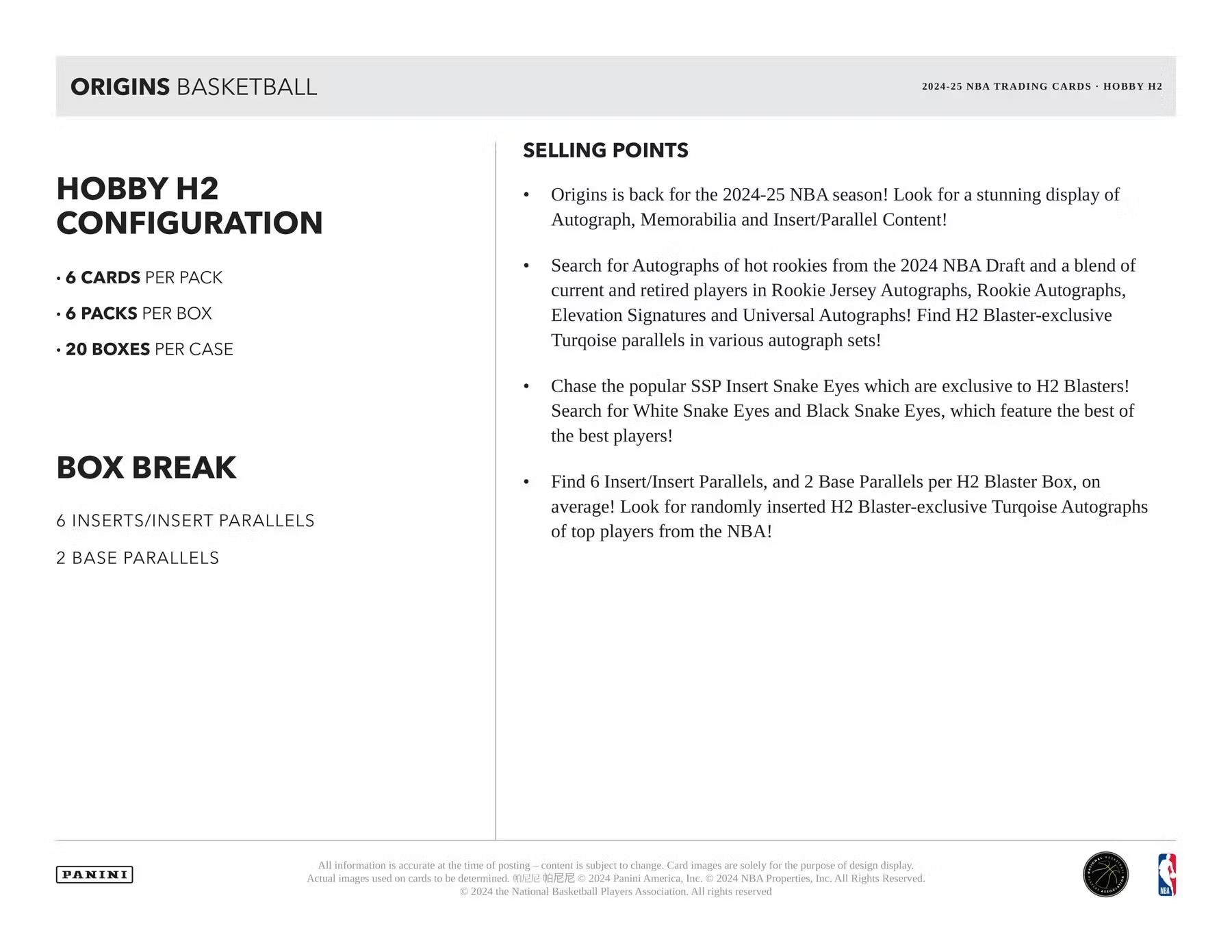 Origins is back for the 2024-25 NBA season! Look for a stunning display of Autograph, Memorabilia and Insert/Parallel Content!